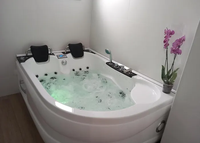 TV, 위성 채널이 있는 평면 TV, 휴게실을 갖춘 객실이 있으며 부엌에는 4 유리 제품, 유리 제품, 주방용품이 있습니다. 이 아파트는 타일 바닥을 갖추고 있습니다. Suite Con Jacuzzi De La Haya, Junto Al Teatro Romano 아파트에는 1개 침실이 있습니다. 1개 욕실에는 욕조, 욕조, 샤워 있습니다.